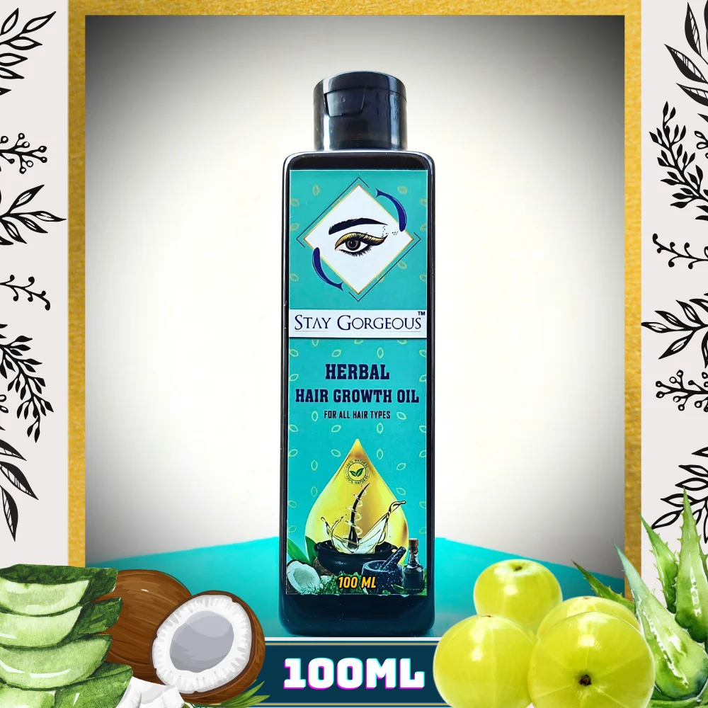 Stay Gorgeous™ Herbal Hair Growth Oil | Infused With 50+ Herbs | 100% Natural | Results You Feel From The First Use- Experience It Now | Promotes Thicker Longer Healthy Hair Growth | Adds Shines & Softness | Reduces Hairfall | Fight Against Infections | 100ml