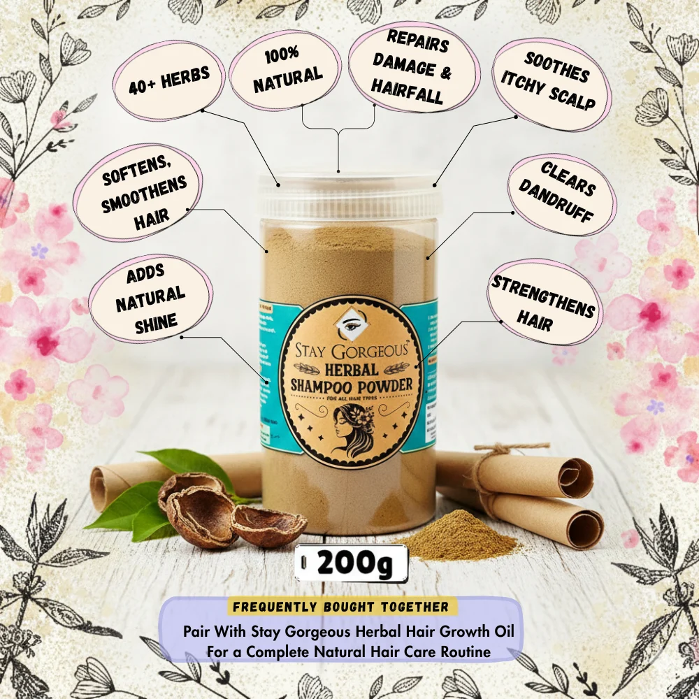 Stay Gorgeous Herbal Shampoo Powder – Traditional 40+ Herbal Blend for Gentle Cleansing & Strong, Healthy Hair | 200g