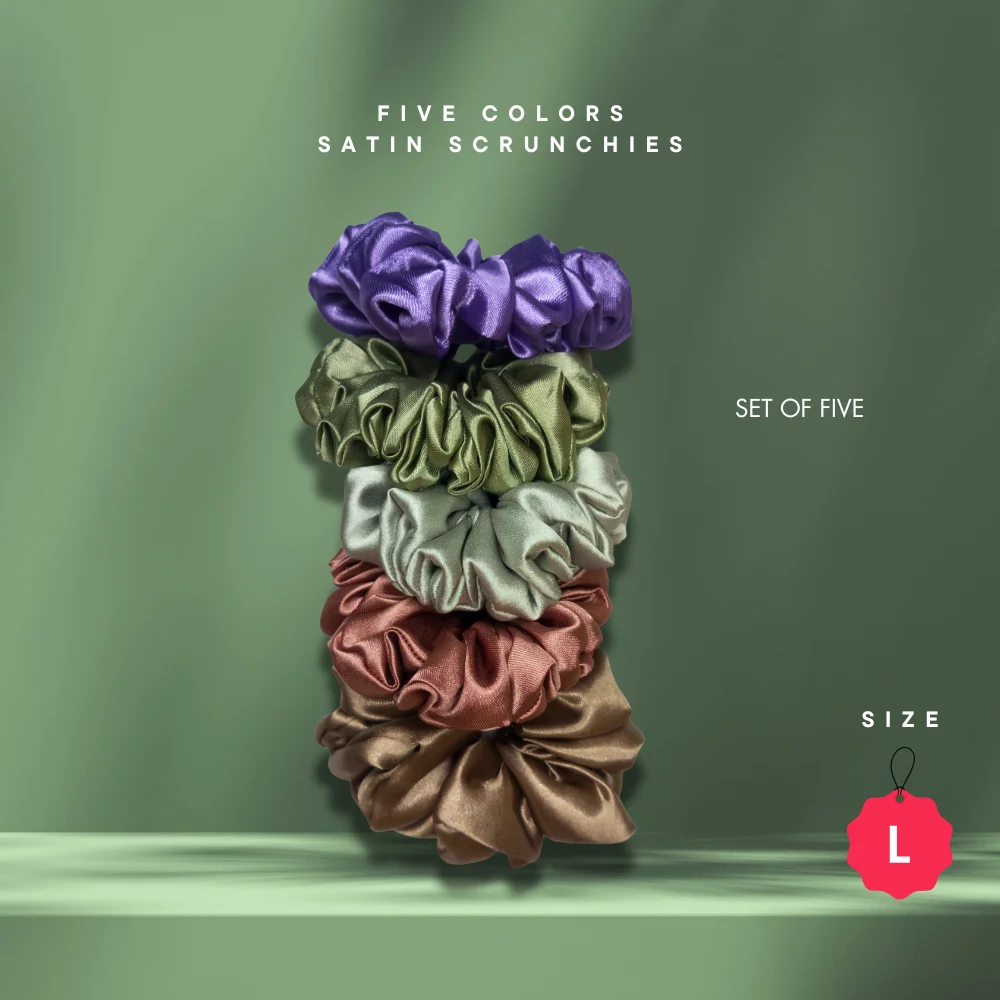STAY GORGEOUS Anti Hair Breakage Satin Scrunchies For Women’s & Girls | Hair Ties | Same Five Colors As Pic | Size L | 5pcs Of Scrunchies